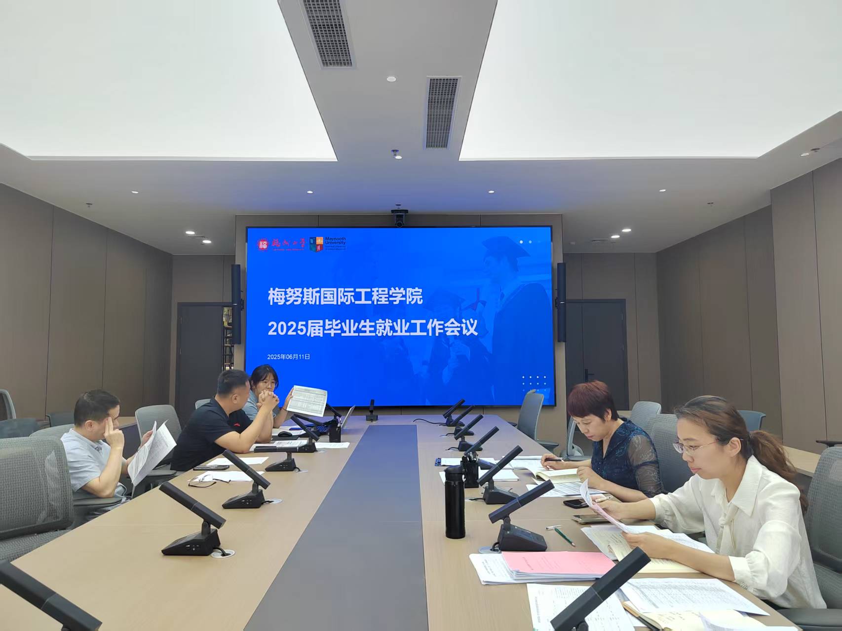 6 月 17 日,梅努斯国际工程学院召开 2025 届毕业生就业工作会议,旨在深入贯彻落实全国、全省有关毕业生就业工作的指示精神,全力推进学院 2025 届毕业生高质量充分就业。学院党委书记翁穗平主持会议,全院教职工参会。