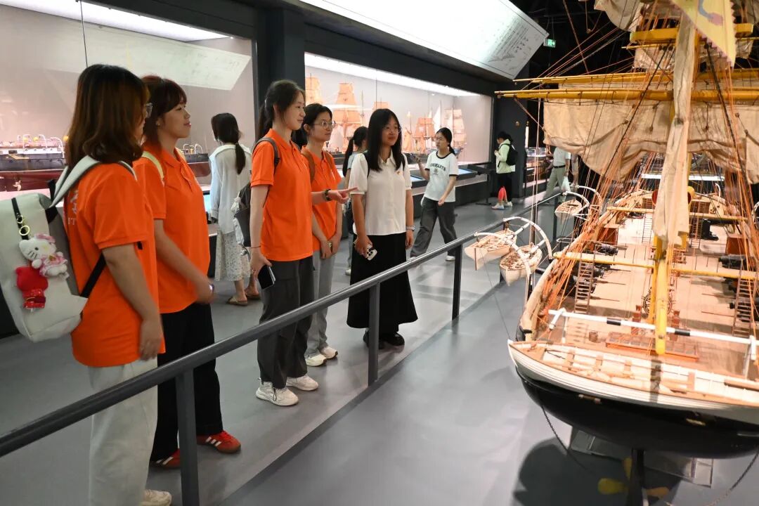 随后,队员们参观了中国船政文化博物馆,从木质帆船到蒸汽铁甲舰,一艘艘精美的船模展示了当时先进的造船技术;墙上挂满的珍贵历史图片和文字资料,详细介绍了福州船政局的创办进程及造船成就。
