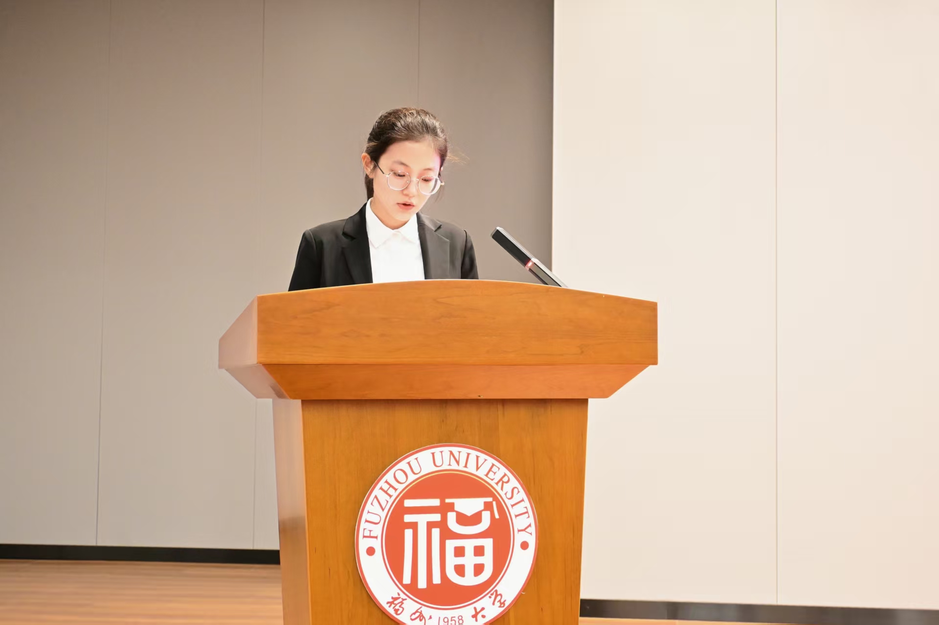 福州大学学生会主席团成员蔡宇轩代表校学生会致辞,对大会召开表示热烈祝贺。他充分肯定学院学生会立足中外合作办学特色,在思想引领、权益维护、活动开展等方面取得的扎实成效,特别提及学院学子在各类竞赛中展现的专业素养与国际视野,屡创佳绩为校争光。