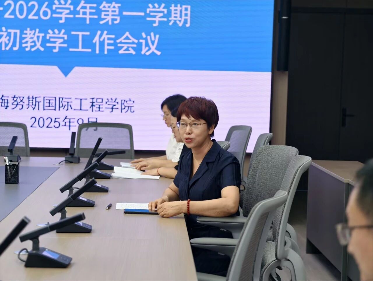 在随后的座谈环节中,与会教师围绕课堂教学组织、课程内容设计、学风建设难点等议题展开深入交流,并就如何激发学生学习动力、加强教学过程管理等方面提出了多项建设性意见。翁穗平书记认真听取教师发言,并就相关问题现场回应,要求教学管理部门系统梳理意见建议,推动合理建议及时转化为具体举措。翁穗平书记在总结中强调,本学期学院将以“十五五”规划编制为契机,系统谋划未来五年发展,持续优化教学支持与服务保障,为教师营造更加良好的育人环境,全体教师应认真学习贯彻《梅努斯国际工程学院关于加强师德师风建设的实施办法》。同时,她也对全体教师提出三点期望:一是希望教师们严守教学纪律,落实师德规范,以教风带动学风;二是希望教师们持续深化教学研究,创新教学方法,打造具有高阶性和挑战度的国际化课程;三是希望教师们积极指导学生参与学科竞赛与科研训练,在教学中拓展学生视野,提升育人实效。